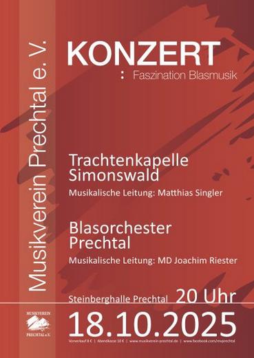 am 18. Oktober 2025 Der Musikverein Prechtal heißt am 18.10.2025 um 20.00 Uhr alle Freunde der Blasmusik zu seinem Herbstkonzert